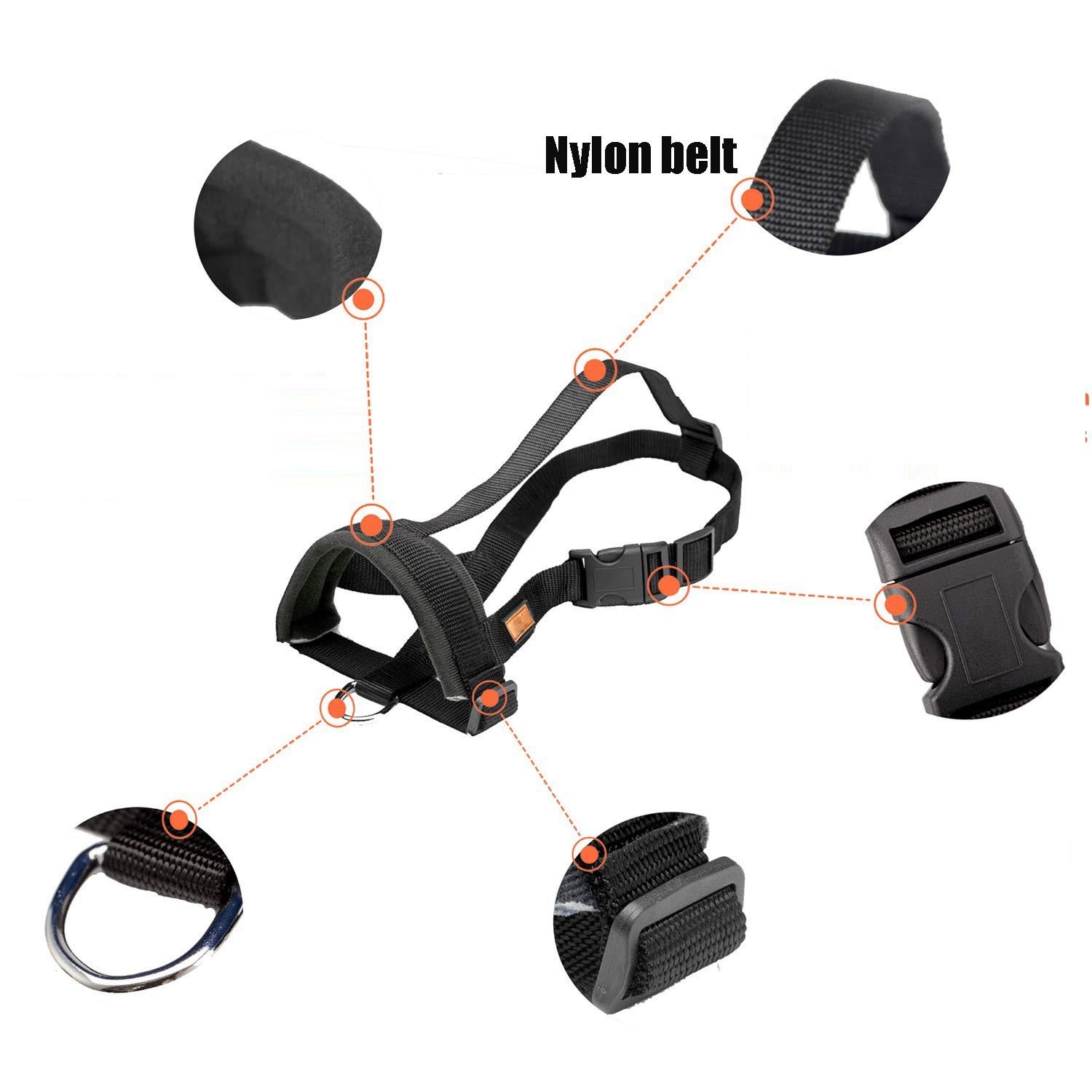 The neck straps have adjustable buckles, users can adjust the length freely. They are easy to install and wear. Not suitable for short-nosed dogs.