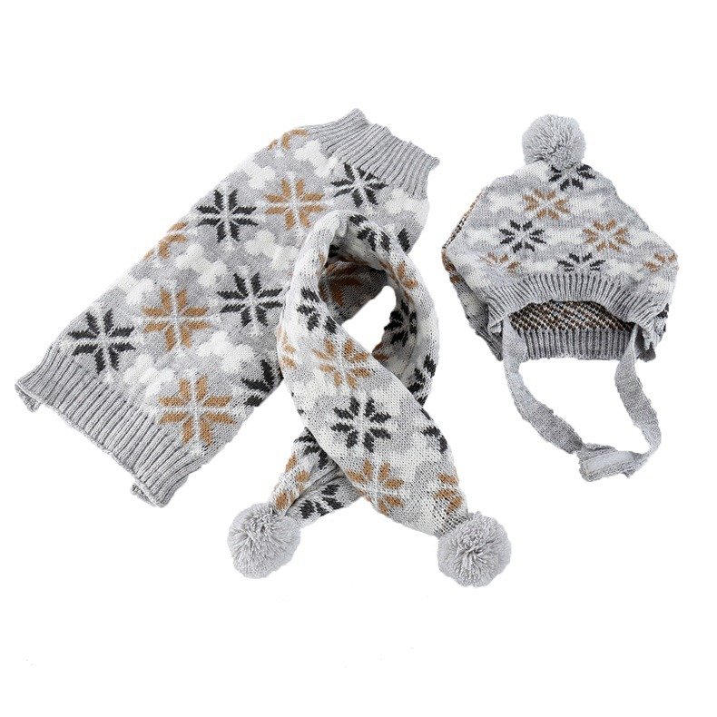 3.Styles: There are two styles of pet clothing, one is a sweater, the other is a combination of scarf and hat, and each style is gray and pink respectively. Available in five sizes; XS\S\M\L\XL, so you can choose whatever style and size fits your dog.