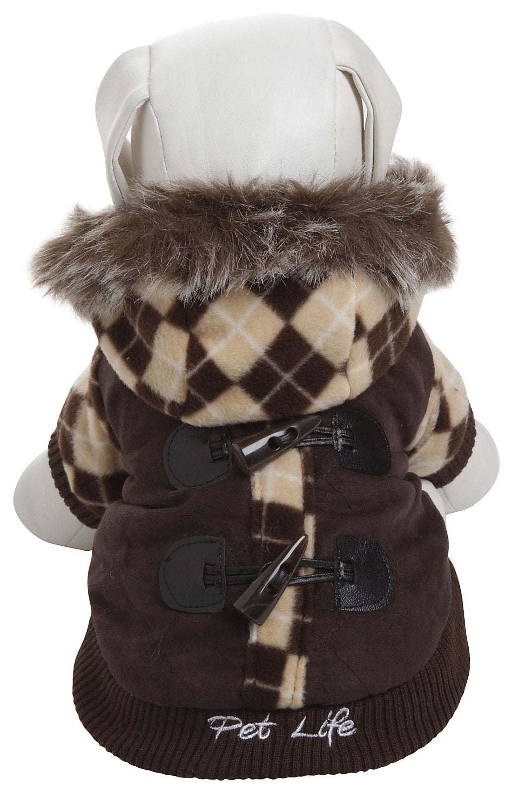 The Pet Life Designer Patterned 'Suede-Argyle' Sweater Dog Coat Jacket features Ultra-Trendy Fashion Rivets along the Backside and a Leash-Slit Holder behind the Neck-Area. This Jacket also Features an Argyle Patterned Fleece Removable Zippered Hood. Composed of Suede and Fleece and Features Thinsulate Thermal Insulation technology keeping your Pet Warmer during those Harsher colder climate weather conditions.