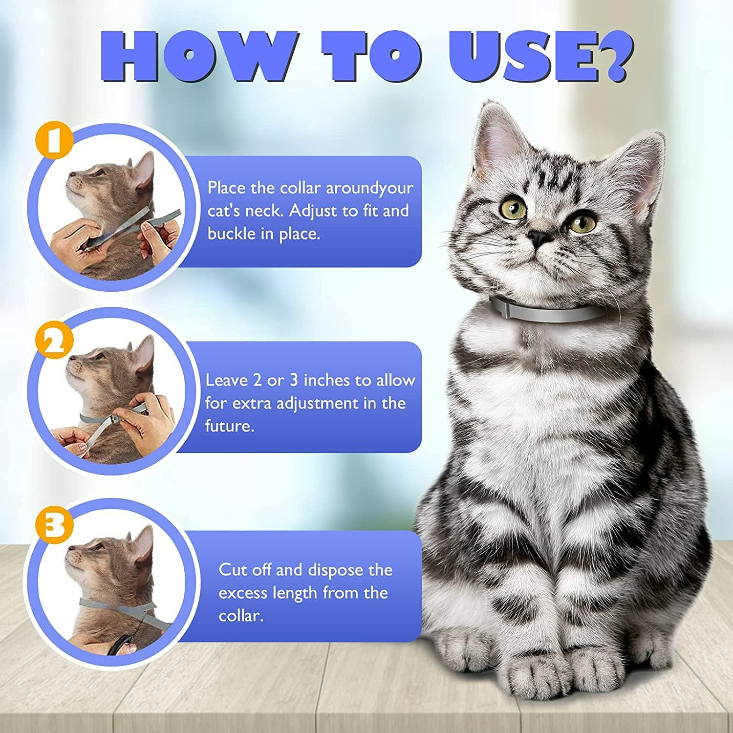 ONE-SIZE-FITS-ALL - Completely adjustable; simply find the paw-fect fit for your cat or kitten and cut the excess length off. Our collar fits small; medium; and large cats that are 8 weeks and older.