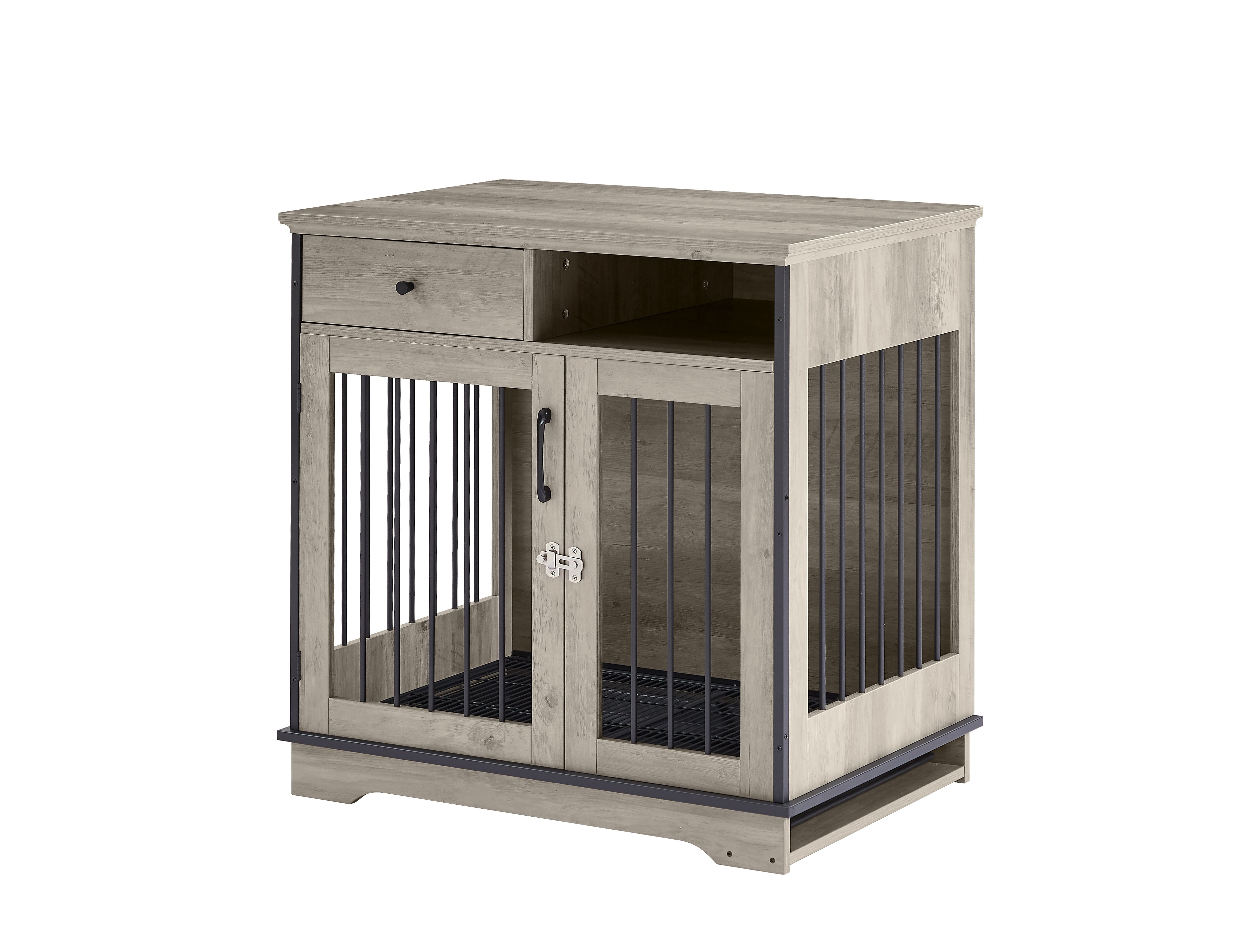 29.2'' x 19.5'' TrayComes with a 29.2'' x 19.5'' tray that pulls out easily to make cleaning easier.Product InformationProduct TypeFurniture dog crateColorRustic BrownMaterialParticleboard, SteelProduct Dimensions32.28'' W x 22.83'' D x 33.46'' HInternal dimensions29.9'' W x 21.65'' D x 22.83'' HSuitable forSmall, Medium-sized dogsDesktop thickness1.18''Max. Static Load Capacity of Top200 lbMax. Static Load Capacity of Bottom150 lbAssembly RequiredAbout 40 minNumber of packages1Package Contents1 xDog Crate, 1 x Accessory Kit, 1 x Instruction