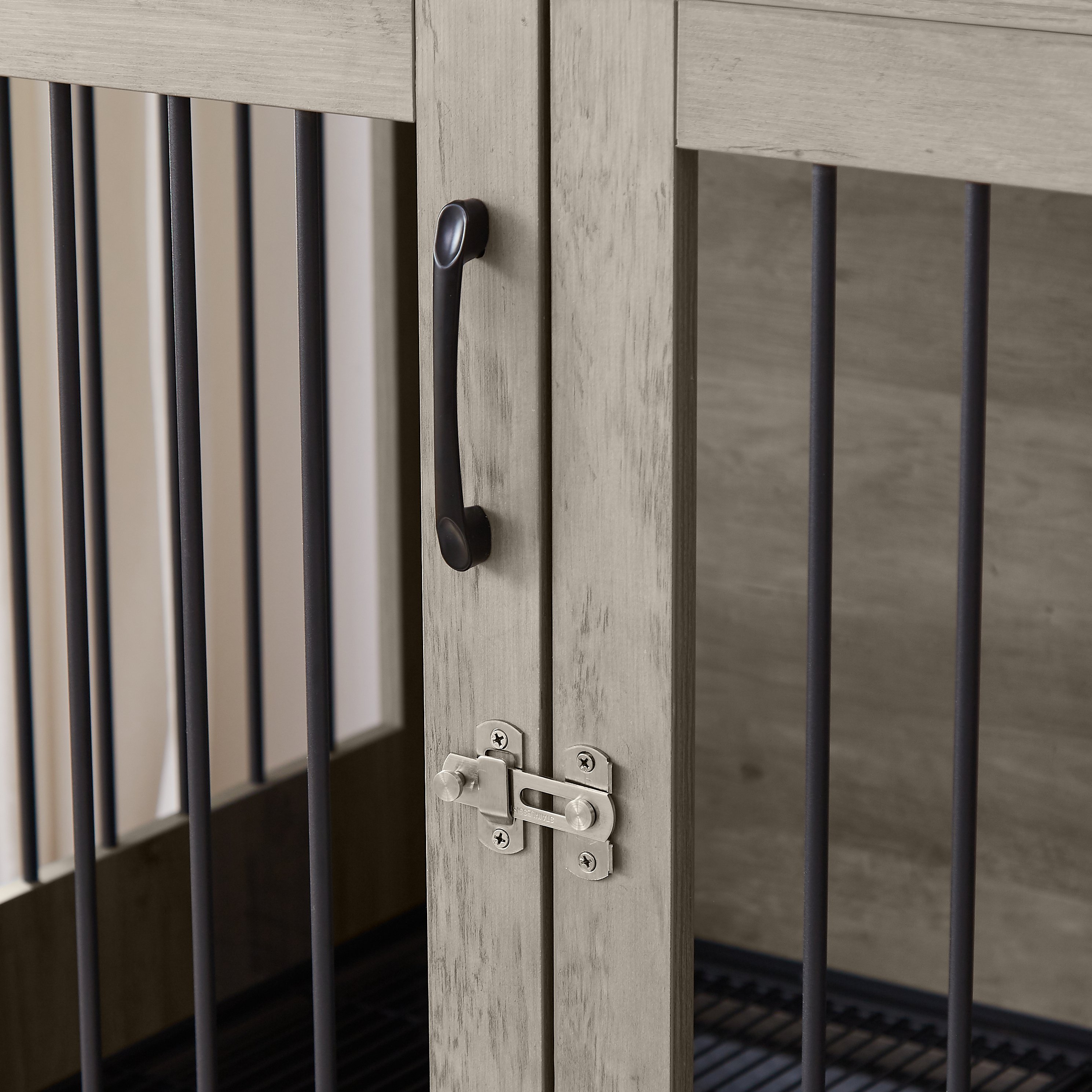 Home > Furniture Dog crate, indoor pet crate end tables, decorative wooden kennels with removable trays. Grey, 32.3'' W x 22.8'' D x 33.5'' H.