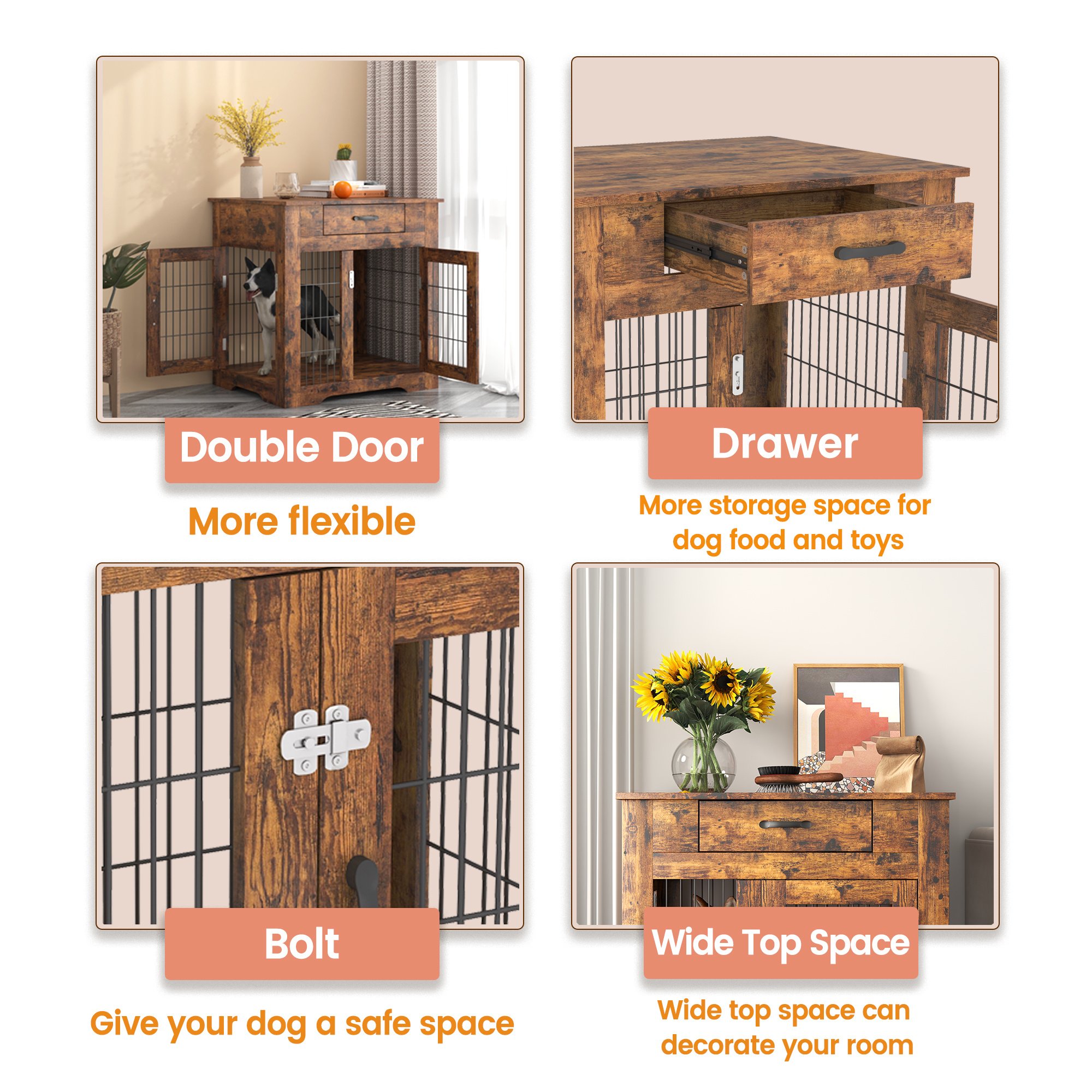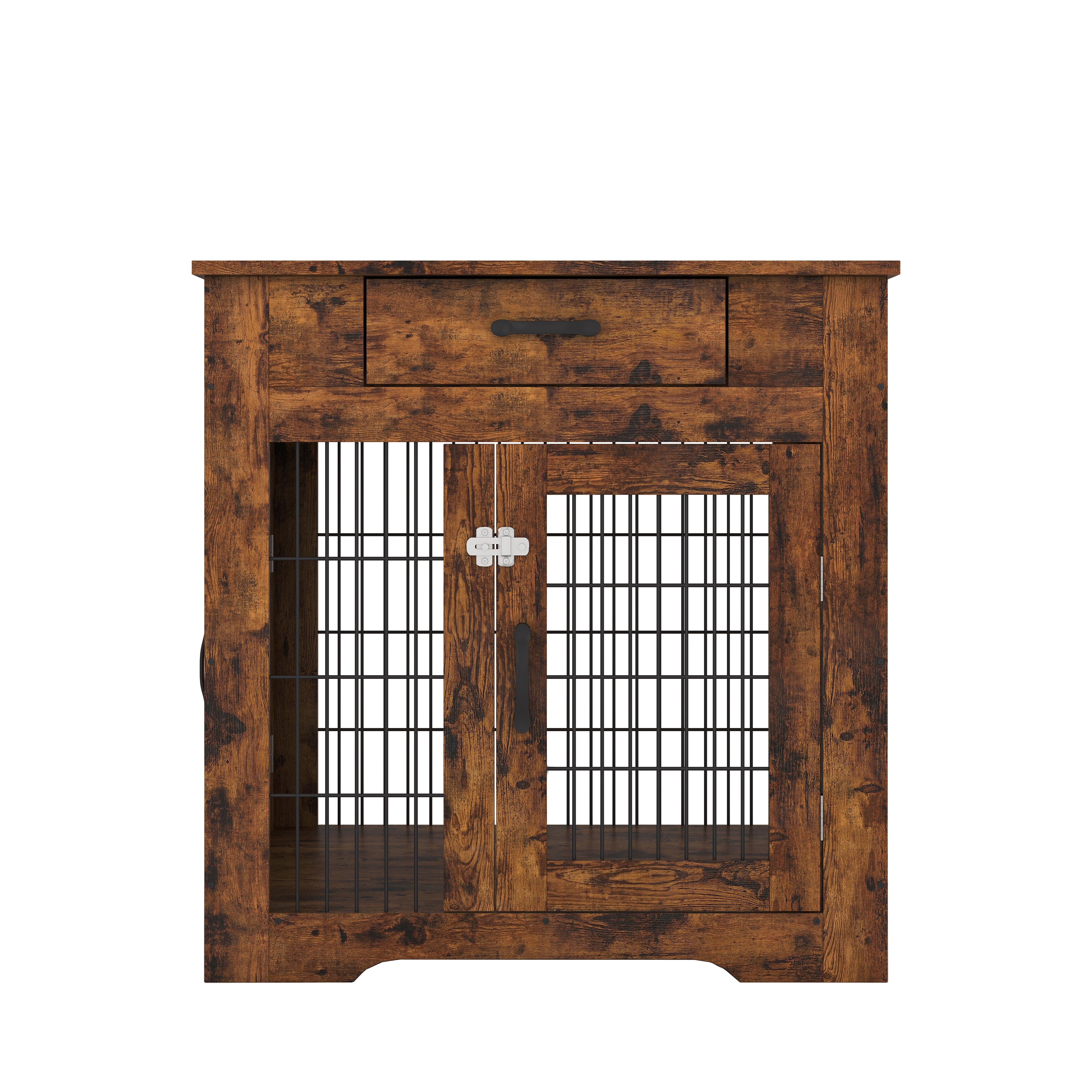 Furniture Style Dog Crate End Table with Drawer, Pet Kennels with Double Doors, Dog House Indoor Use. Rustic Brown, 29.92'' W x 24.8'' D x 30.71'' H.