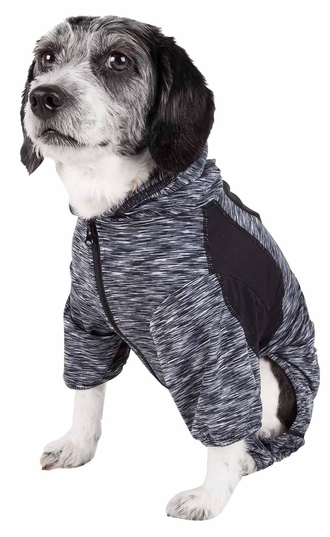 Home > Pet Life Active 'Downward Dog' Heathered Performance 4-Way Stretch Two-Toned Full Body Warm Up Hoodie