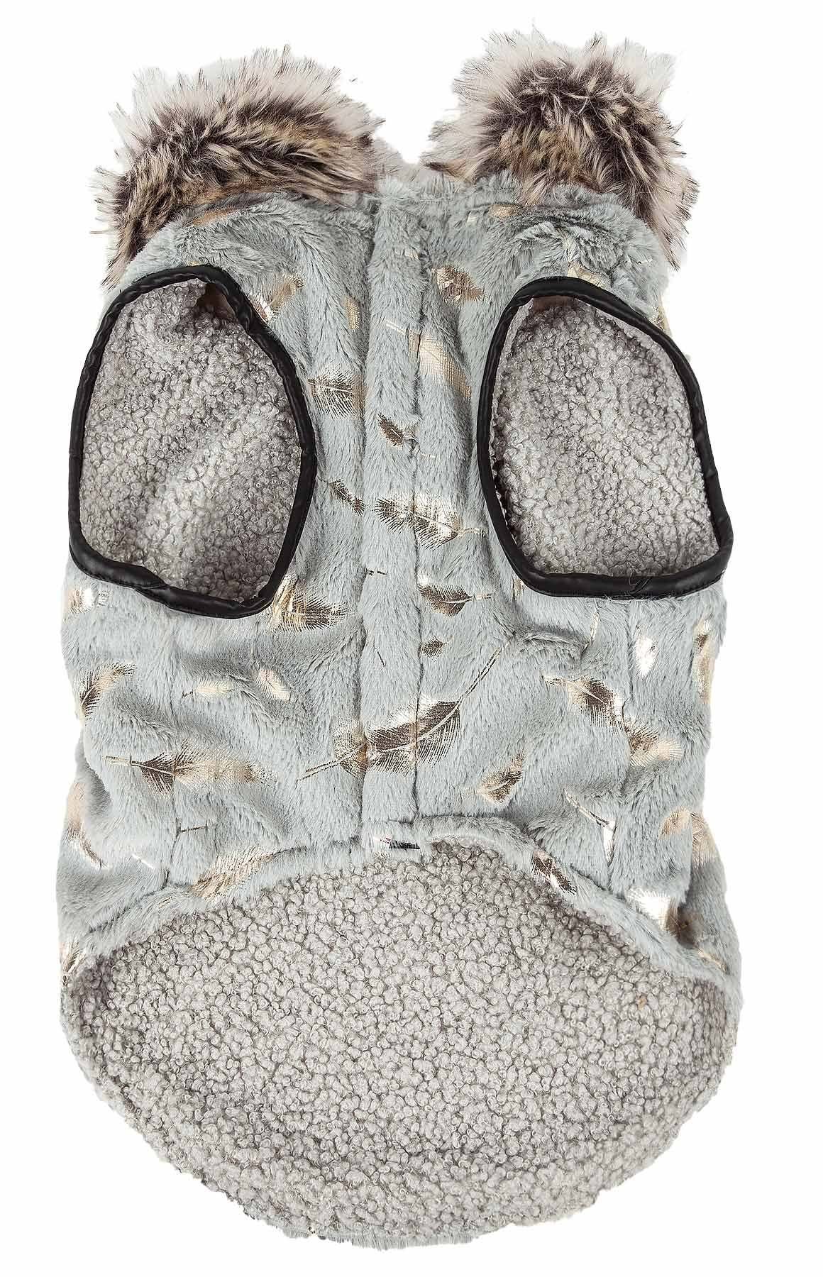 The Pet Life LUXE 'Gold Wagger' Gold-Leaf Designer Fur Dog Coat features an Extravagant Gold Leaf Pattern along the back side embedded on an Buttery-Soft Faux-Fur solid Grey exo-shell and the Reverse is lined with Sherpa for added comfortability and warmth that gently hugs the body. Features Sponged sided lining for superior craftsmanship and durability by the sleeve areas with an Accented Trendy Faux-Fur Collar. Features Tough-Grade Velcro Belly Enclosures for convenient on and off access and a leash slit below the Neck line. This jacket is part of our Pet Life Luxury collection. Available in Multiple Sizes.