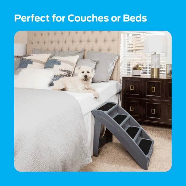 The Plastic Pet Steps is a safe and easy way to help your pet reach their favorite place. It's lightweight at only 5 lb. and the innovative design safely supports pets up to 150 lb. Safety siderails and step tread are built into the design so your pet can climb up and down with confidence. it's the perfect size for couches and beds, and folds away for convenient storage or travel.