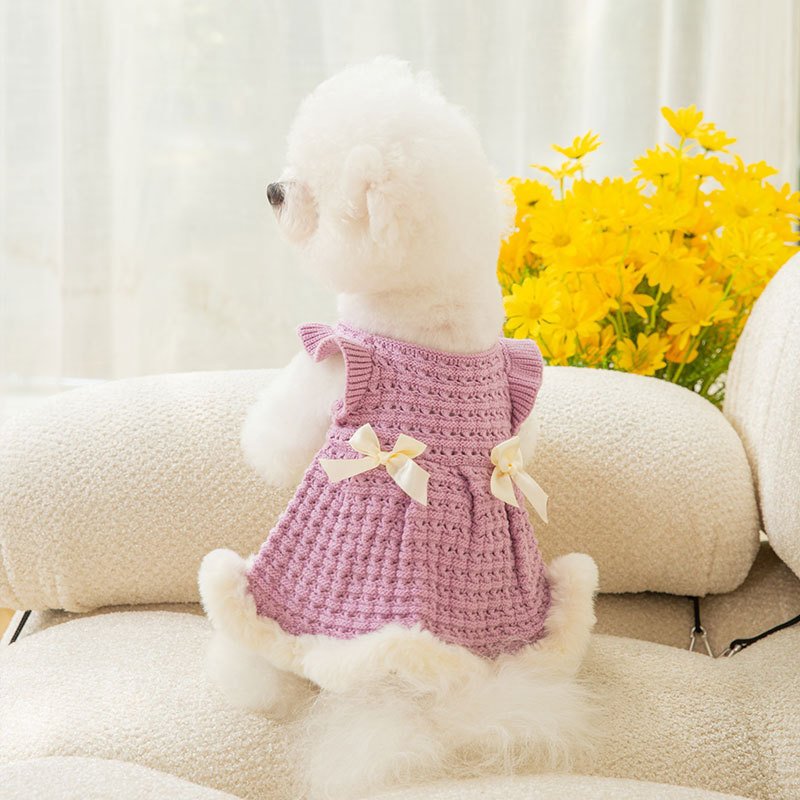 Warm and thickened dog clothes in autumn and winter; bow sweater skirt; dog sweater