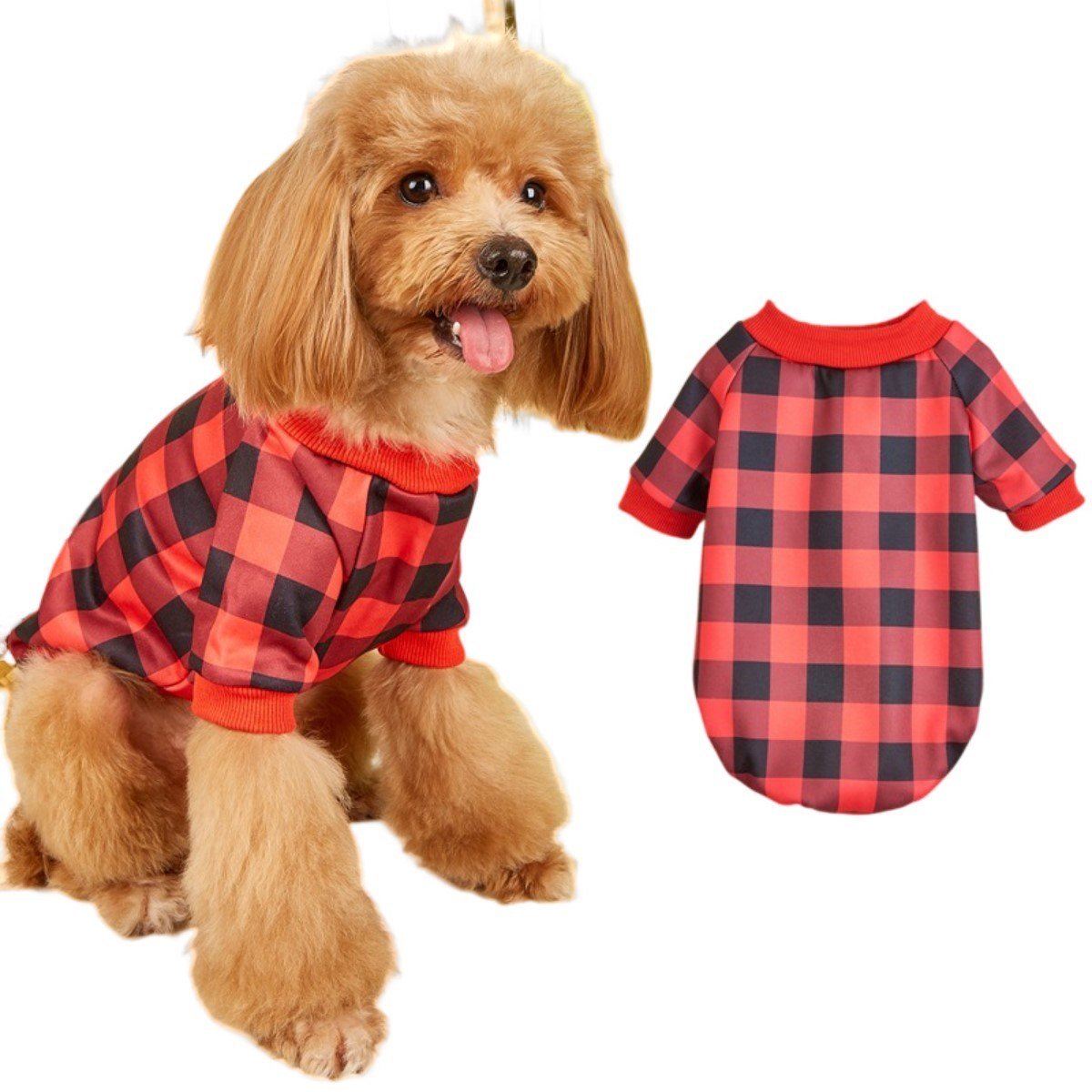 3.Styles and Specifications: There are three main styles of this product. Beige and black check, red and black check, blue and black check; The sweater is also available in four sizes, XS\S\M\L, so you can choose any style and size that suits your dog.
